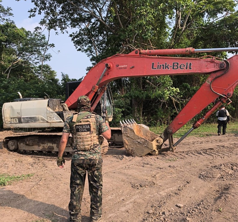 Policiais civis apreendem em área de garimpo ilegal máquinas compradas em golpe contra empresa de SP