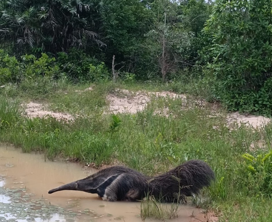 Um tamanduá-bandeira macho foi solto nesta semana pela Secretaria de Estado de Meio Ambiente (Sema) no Pantanal, em Poconé. O animal foi resgatado de uma