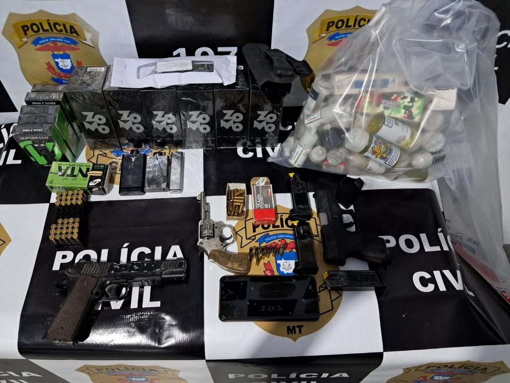 Policiais civis da Delegacia de Pedra Preta cumpriram, na manhã desta sexta-feira (17.1), mandado de busca que resultou na apreensão de armas de fogo e