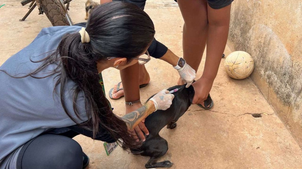 Somente na manhã de hoje, 134 animais foram vacinados pelas equipes. A proposta é facilitar o acesso à imunização e garantir que todos os cães