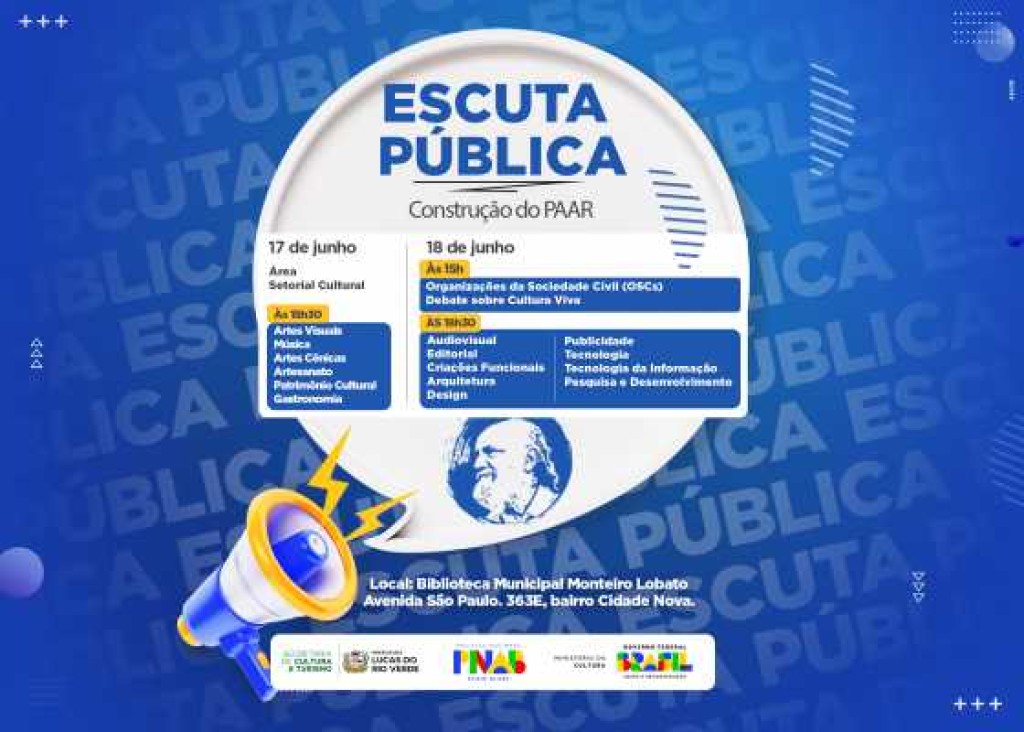 A Prefeitura de Lucas do Rio Verde, por meio da Secretaria de Cultura e Turismo realizará, nos dias 17 e 18 de junho, uma escuta