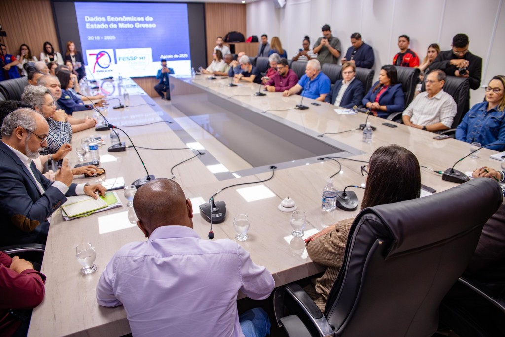 A Assembleia Legislativa de Mato Grosso (ALMT) realizou, nesta terça-feira (12), uma apresentação técnica sobre a defasagem da Revisão Geral Anual (RGA) dos servidores públicos estaduais. Conduzida pela Comissão Técnica Interna, criada em janeiro para tratar do tema, a reunião contou com a participação dos deputados Janaina Riva (MDB), Lúdio Cabral (PT) e Eduardo Botelho (União), além de representantes da Federação Sindical dos Servidores Públicos de Mato Grosso (FESSP-MT) e de diversas entidades sindicais.