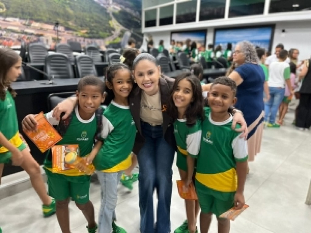 A atividade integrou o projeto “Cuiabaninhos” na Câmara, voltado à aproximação de crianças com o universo político e legislativo, promovendo a educação cidadã desde os primeiros anos escolares.