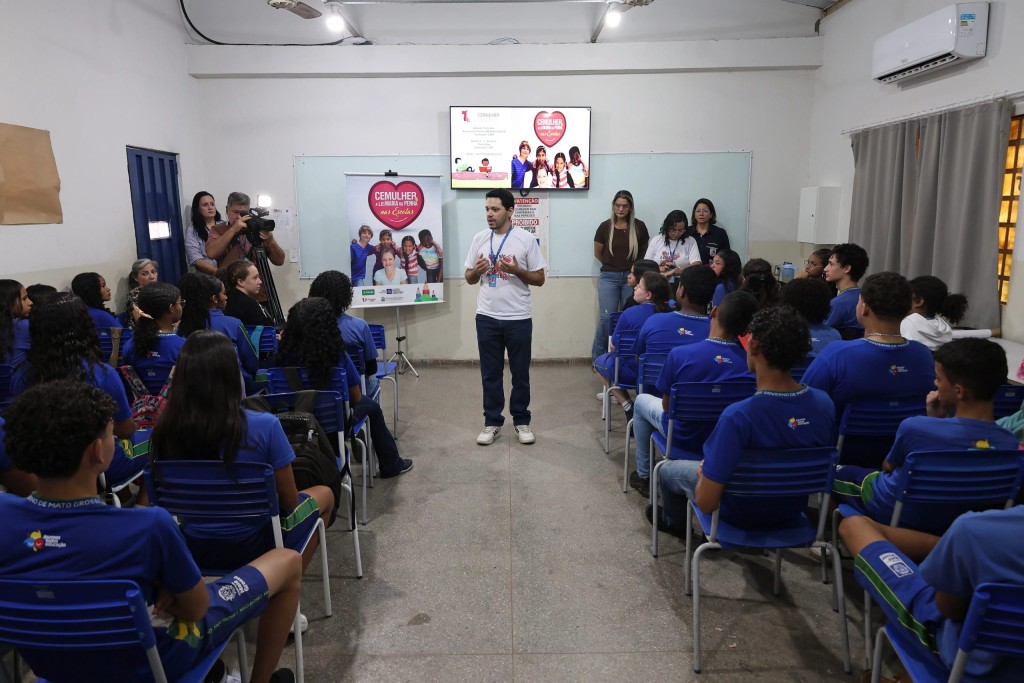 Na manhã desta quarta-feira (10 de setembro), cerca de 100 alunos da Escola Estadual Vanil Stabilito, em Várzea Grande, participaram da palestra promovida pela equipe multidisciplinar da Coordenadoria Estadual da Mulher em Situação de Violência Doméstica e Familiar do Tribunal de Justiça de Mato Grosso (Cemulher-TJMT). A ação integra o projeto “Cemulher nas Escolas”, que visa conscientizar os estudantes sobre os diferentes tipos de violência contra a mulher, os mecanismos legais de proteção e a importância da prevenção desde cedo.O psicólogo da Cemulher, Danilo Cesar Correia da Silva, que estava acompanhado da assessora técnica da Cemulher, Adriany Carvalho, explicou que o objetivo da iniciativa é educativo e preventivo.