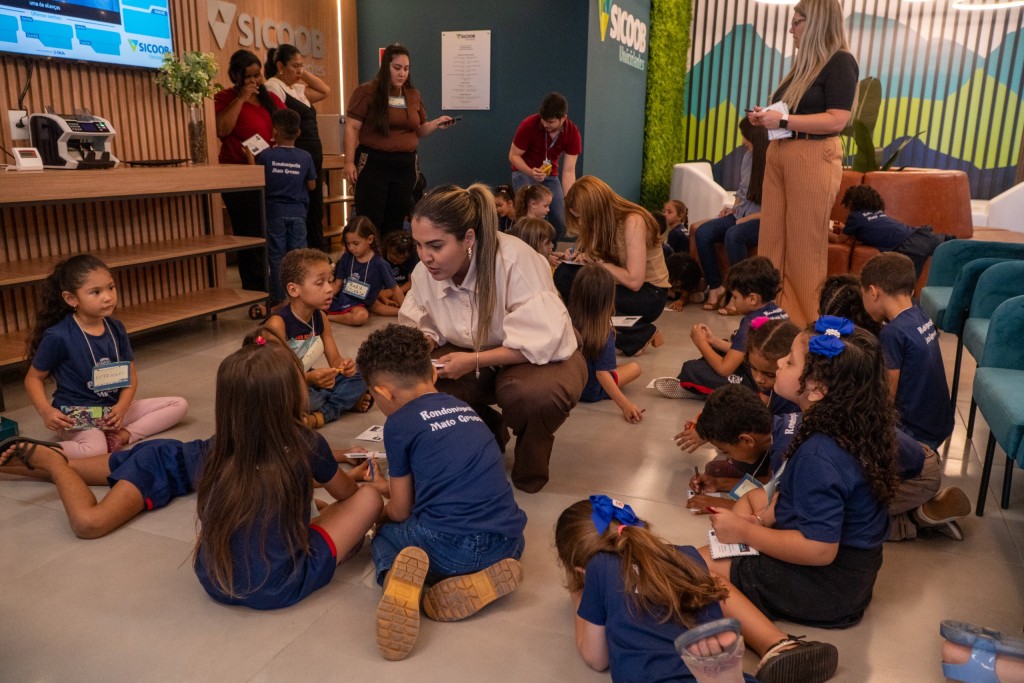 Alunos do 5º agrupamento da educação infantil do Centro Municipal de Educação Infantil (Cmei) Antonio Vanier visitaram nesta quinta-feira (20) a agência Sicoob Unicidades, da avenida Lions Internacional de Rondonópolis. Os estudantes estão participando do projeto “Financinhas” do Instituto Sicoob e nesta fase puderam conhecer o funcionamento de uma instituição financeira.