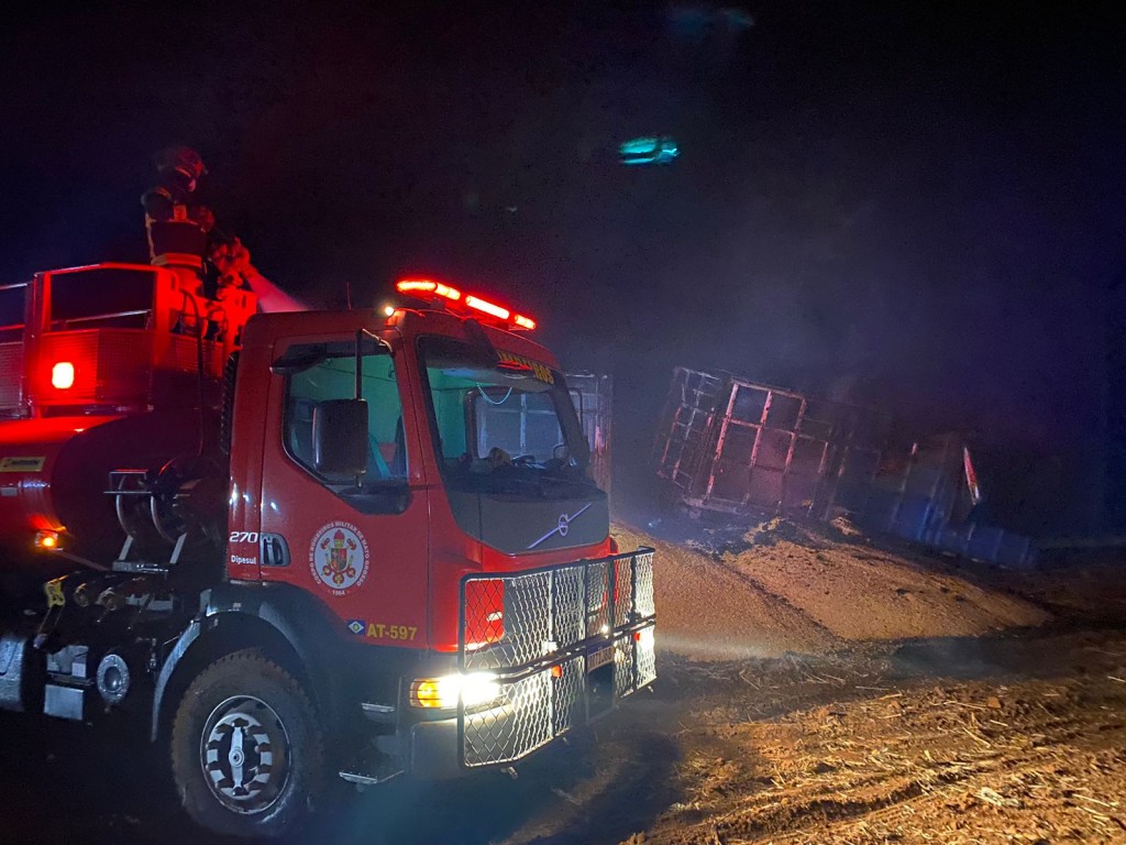 A equipe da 11ª Companhia Independente Bombeiro Militar (11ª CIBM) foi até o local e, ao chegar, constatou que as chamas já haviam atingido o primeiro lance da carroceria, a carga e os pneus do veículo.