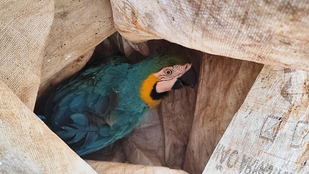Já nesta sexta-feira a equipe foi chamada para resgatar uma arara-canindé que estava ferida no pátio de uma transportadora, no bairro Industrial. No local, os militares verificaram que a ave possuía uma possível fratura em uma das asas.