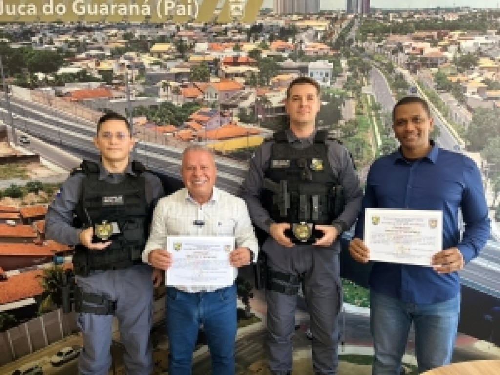 O presidente da Câmara Municipal de Cuiabá, vereador Chico 2000 (PL), recebeu na tarde desta quinta-feira (17), uma Moeda Honorífica pelos relevantes serviços prestados à comunidade e um certificado de Amigo do 3º Batalhão da Polícia Militar de Mato Grosso. O Diretor de Segurança Institucional da Câmara, Coronel Edvan Manoel de Azevedo também foi homenageado. A honraria veio pelas mãos dos tenentes coroneis Benedito Martins Carvalho Júnior e Matheus Belphaman Cacciolari.