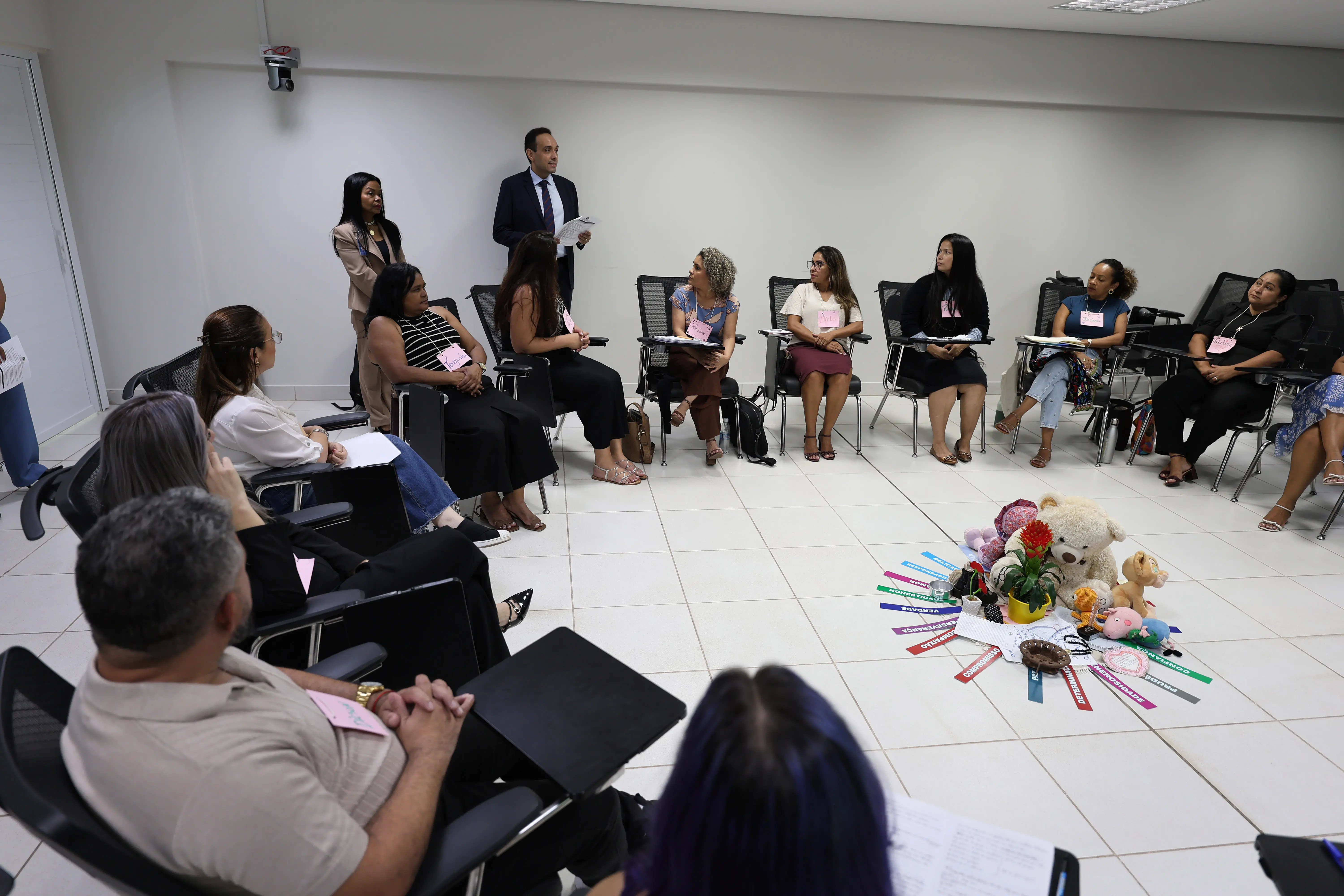 A visita ocorreu em um ambiente de formação continuada, voltado justamente ao aprimoramento de práticas restaurativas no contexto escolar. O curso promovido pelo Núcleo Gestor da Justiça Restaurativa (Nugjur), em parceria com a Secretaria de Estado de Educação de Mato Grosso (Seduc-MT), e reúne assistentes sociais e psicólogos das 40 equipes psicossociais que atendem 139 escolas estaduais nos 11 municípios da Diretoria Metropolitana de Educação (DME).