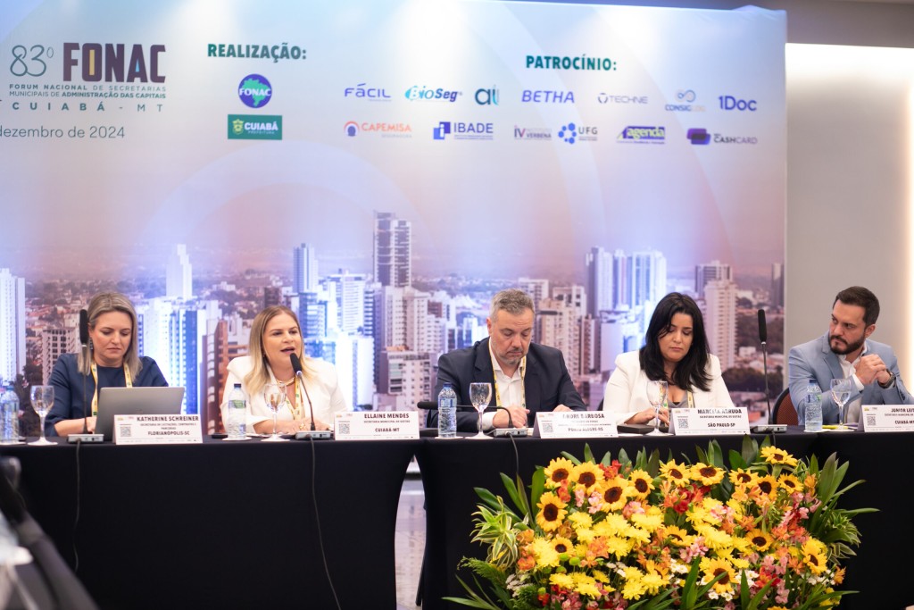 A abertura do Fórum Nacional das Secretarias Municipais de Administração: Inovação, Modernização e Eficiência em Destaque aconteceu na manhã desta quinta-feira (12), em Cuiabá, com a presença de secretários municipais de Administração de nove capitais e representantes de municípios convidados. A cerimônia contou com apresentações artísticas do grupo Siriri Elétrico, destacando as tradições cuiabanas do Siriri e Cururu. O evento está sendo realizado no Hotel Deville e segue até amanhã. Esta é a terceira edição do FONAC realizada em Cuiabá. Coincidentemente, uma das edições, a 69ª, ocorreu em 2018, no início da gestão de Emanuel Pinheiro, enquanto agora, no encerramento de seu segundo mandato, Cuiabá sedia a 83ª edição do Fórum. A outra ocasião foi a 57ª edição, em 2012.
