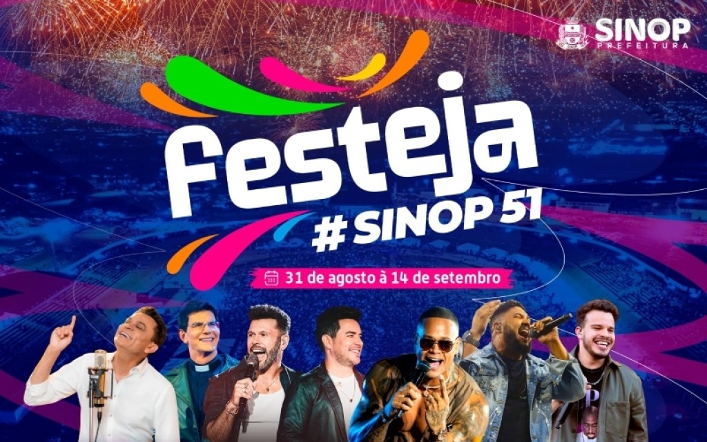Toda a programação oficial do Festeja Sinop 2025 pode ser acompanhada nas redes sociais da Prefeitura e no site institucional.
