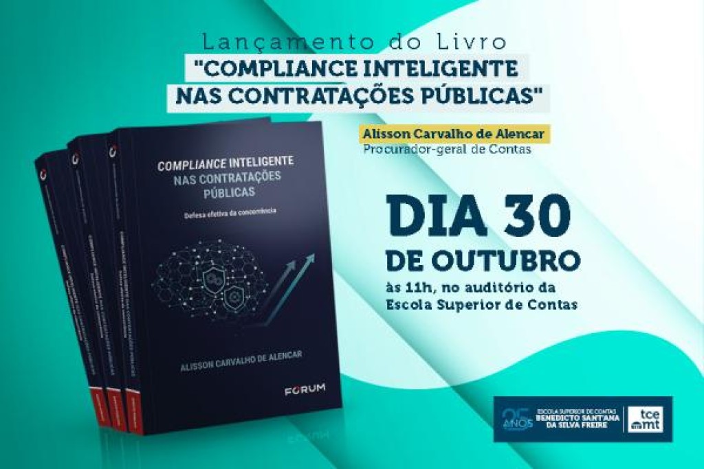 O procurador-geral de Contas, Alisson Carvalho de Alencar, lança, às 11h da próxima quinta-feira (30), o livro “Compliance Inteligente nas Contratações Públicas – defesa efetiva da concorrência”. O evento será realizado no auditório da Escola Superior de Contas do Tribunal de Contas de Mato Grosso (TCE-MT).