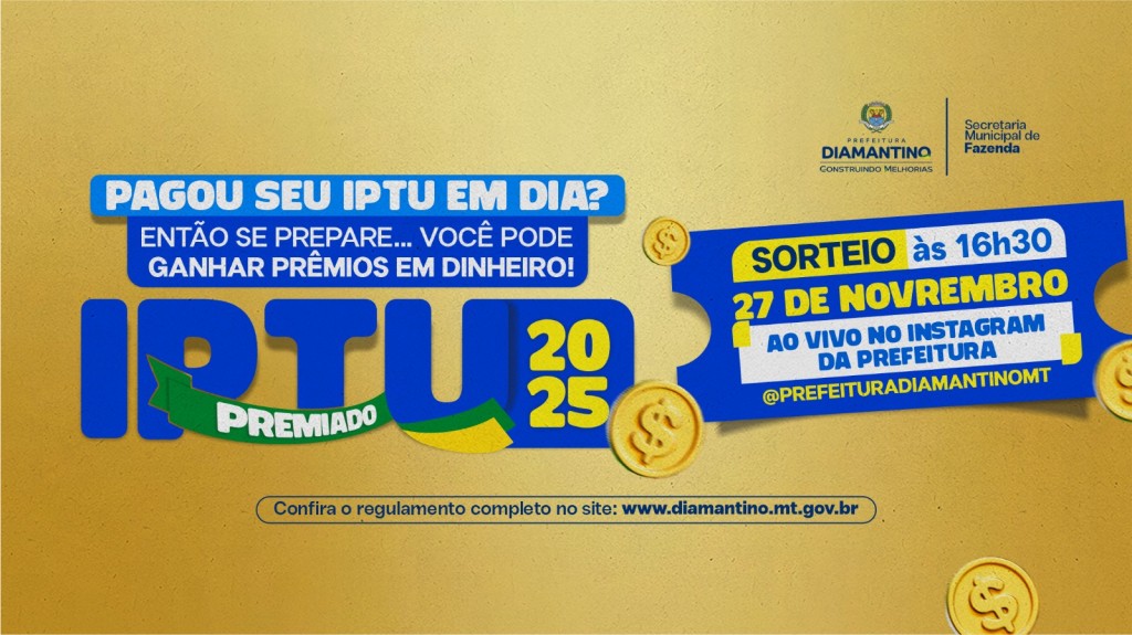 A Prefeitura de Diamantino, por meio da Secretaria Municipal de Fazenda e em parceria com a Academia Brasileira de Formação e Pesquisa (ABFP), realizará no dia 1º de dezembro, às 18h, na Câmara Municipal, um encontro técnico voltado à apresentação e análise dos principais pontos da Reforma Tributária, com ênfase na Contribuição sobre Bens e Serviços (CBS), no Imposto sobre Bens e Serviços (IBS) e no Imposto Seletivo (IS).