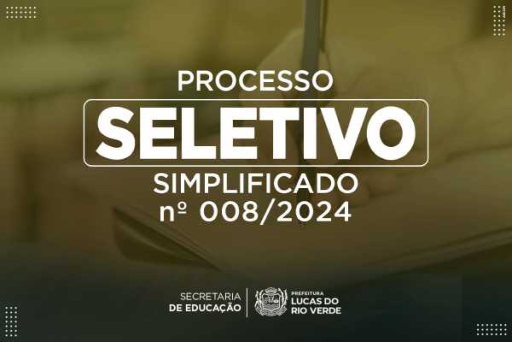 A Prefeitura de Lucas do Rio Verde, por meio da Secretaria de Governo e Administração, lançou nesta quinta-feira (17) o Edital de Processo Seletivo Simplificado nº 008 /2024 para profissionais atuarem junto à Secretaria Municipal de Educação (SME). As inscrições devem ser feitas de 21 de outubro a 18 de novembro de 2024. As vagas são para contratação temporária de níveis fundamental, médio, médio técnico e superior completo.