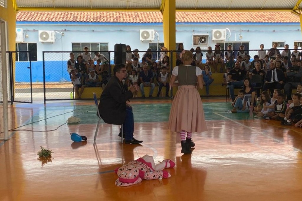 A primeira etapa do projeto Prevenção Começa na Escola em 2025 terminou nesta sexta-feira (21), com duas apresentações da peça teatral “Inocentes Pétalas Roubadas” na quadra da Escola Municipal Edson Ferreira de Carvalho, em Nova Canaã do Norte (a 699 km de Cuiabá). Esta semana, centenas de alunos foram beneficiados pela iniciativa da Procuradoria de Justiça Especializada na Defesa da Criança e do Adolescente, do Ministério Público de Mato Grosso. O projeto visitou também os municípios de Apiacás e Paranaíta.“O projeto ‘Prevenção Começa na Escola’ foi a maneira encontrada pelo MPMT, em parceria com a Cia. Vostraz, de percorrer todo o estado de Mato Grosso levando informações fundamentais para crianças e adolescentes. Estamos completando mais de 65 municípios atendidos, incluindo cidades a mais de mil quilômetros de distância da capital, como Porto Alegre do Norte, São Félix do Araguaia e São José do Xingu. E agora, nessa primeira temporada do ano, atendendo cidades que ficam a praticamente 900 quilômetros de Cuiabá”, contou o procurador de Justiça Paulo Roberto Jorge do Prado.Conforme o titular da Procuradoria Especializada, o projeto contribui para aproximar o MPMT da população, visando levar informação, esclarecimentos e conhecimento aos profissionais da educação, autoridades locais e, especialmente, ao público infanto-juvenil. “Com a peça, por meio de uma linguagem lúdica, que emociona e prende a atenção da plateia, conseguimos resultados extraordinários, muito melhores do que em uma palestra, por exemplo. O teatro e a arte têm uma linguagem mais próxima para as crianças e adolescentes”, considerou.O procurador de Justiça reforçou ainda que o projeto está completando sete anos de apresentação e de estradeiro, com mais de 300 apresentações teatrais. “É um sucesso total. Além de emocionar o público, o Ministério Público atua na prevenção e também estimula a denúncia de práticas nocivas dentro e fora do ambiente escolar como bullying e qualquer tipo de violência, principalmente abuso sexual contra crianças e adolescentes”, afirmou.Em Nova Canaã do Norte, as apresentações foram organizadas pelo promotor de Justiça Alvaro Padilha de Oliveira. “A peça ‘Inocentes Pétalas Roubadas’ foi muito bem aceita por toda a população e trouxe temas muito importantes, especialmente a exploração e o abuso sexual infantil, os quais precisamos prevenir por meio da educação, conscientização e estímulo à denúncia”, apontou.A secretária municipal de Educação, Rosangela Santos, destacou a importância da iniciativa para crianças e adolescentes. “De uma forma lúdica, a peça traz algumas realidades que são muito difíceis para toda a sociedade e que acontecem em todos os lugares. Acredito que essas apresentações darão um bom resultado aqui no nosso município. Por isso quero agradecer ao Ministério Público por essa iniciativa e esses cuidados com as nossas crianças”, salientou.O investigador de polícia André Lacerda disse estar muito feliz por participar do Prevenção Começa na Escola e agradecido por saber que existem projetos como esse, para que as crianças possam entender melhor o abuso infantil e, consequentemente, buscar ajuda.Cronograma – Para 2025, estão previstas 32 apresentações da peça, em 16 municípios, durante cinco etapas. Na próxima semana, o projeto contemplará Matupá (25/03), Marcelândia (26/03), Itaúba (27/03) e Feliz Natal (28/03). A partir de abril, serão visitados Juara (09/04), Porto dos Gaúchos (10/04) e Tabaporã (11/04) na terceira etapa, e Porto Alegre do Norte (15/04) e São José do Xingu (16/04) na quarta etapa. As últimas apresentações serão realizadas em Ribeirão Cascalheira (22/04), Canarana (23/04), Campinápolis (24/04) e Novo São Joaquim (25/04).A montagem atual da peça “Inocentes Pétalas Roubadas” tem no elenco Maicon D’Paula, que é o diretor da Cia. Vostraz, e os atores Jorge Fernandez, Safiri Viscony e Fernanda Acosta.