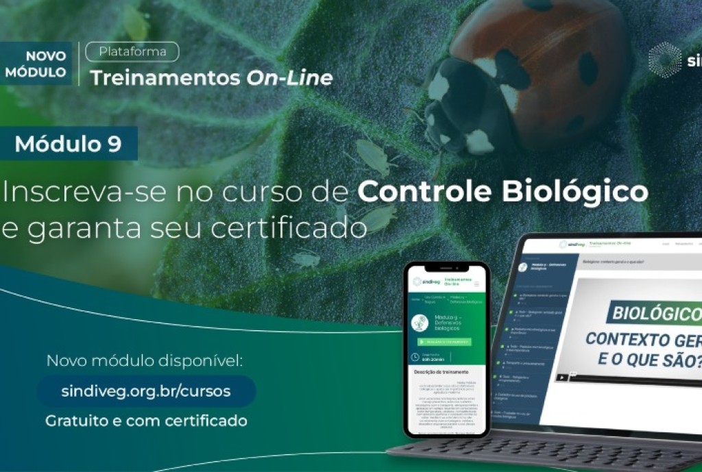 Para mais informações e inscrições no curso de Controle Biológico, acesse a plataforma online do Sindiveg.