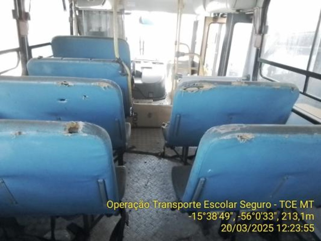 Além disso, apenas quatro veículos tinham cronotacógrafo com certificação válida. Os outros 31 estavam irregulares ou não possuíam o dispositivo, que registra informações de uso e deslocamento e auxilia na fiscalização, no controle da jornada e na análise de acidentes. A inspeção também identificou buracos na lataria, bancos rasgados, ferrugem, vidros quebrados e acúmulo de sujeira.