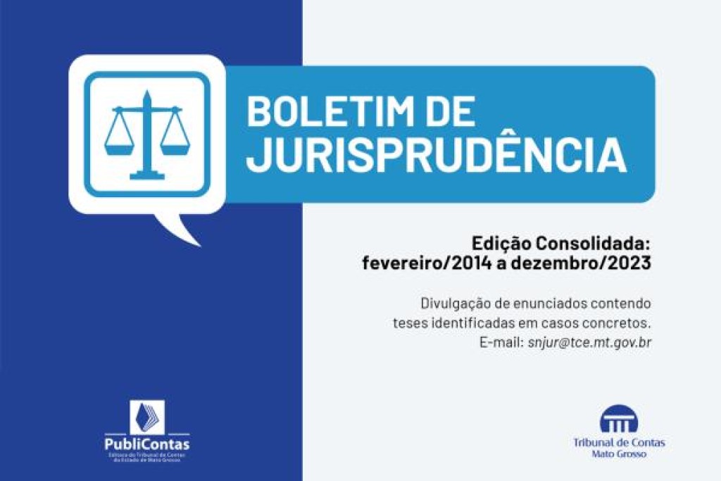 O Tribunal de Contas de Mato Grosso (TCE-MT) disponibilizou a edição consolidada do Boletim de Jurisprudência, referente ao período de fevereiro de 2014 a dezembro de 2023 (clique aqui). Por meio dos enunciados de jurisprudência, com teses identificadas em casos concretos selecionados por relevância, atualidade, ineditismo, reiteração, alcance, caráter social e efeito pedagógico-orientativo, o instrumento simplifica o acesso às decisões e garante mais transparência.