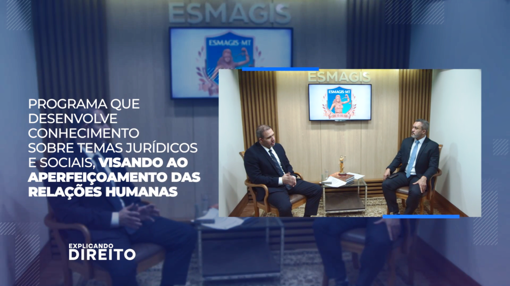 O programa Explicando direito, iniciativa da Esmagis-MT, desenvolve conhecimento sobre temas jurídicos e sociais, visando ao aperfeiçoamento das relações humanas, por meio de um bate-papo com personalidades convidadas, seja no estúdio da Esmagis ou virtualmente.